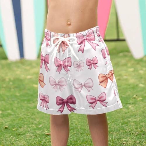 Pigsaly Boys Swim Trunks Coquette Orange Pink Bows White Boys Board Shorts Swimsuit Swimwear Summer Bathing Suit XS 3