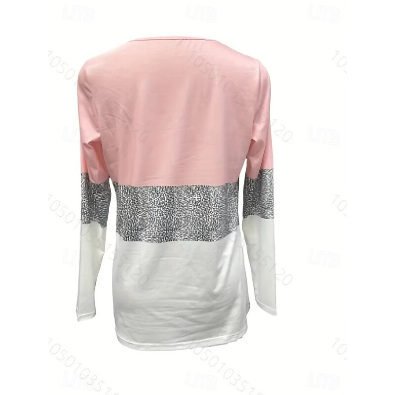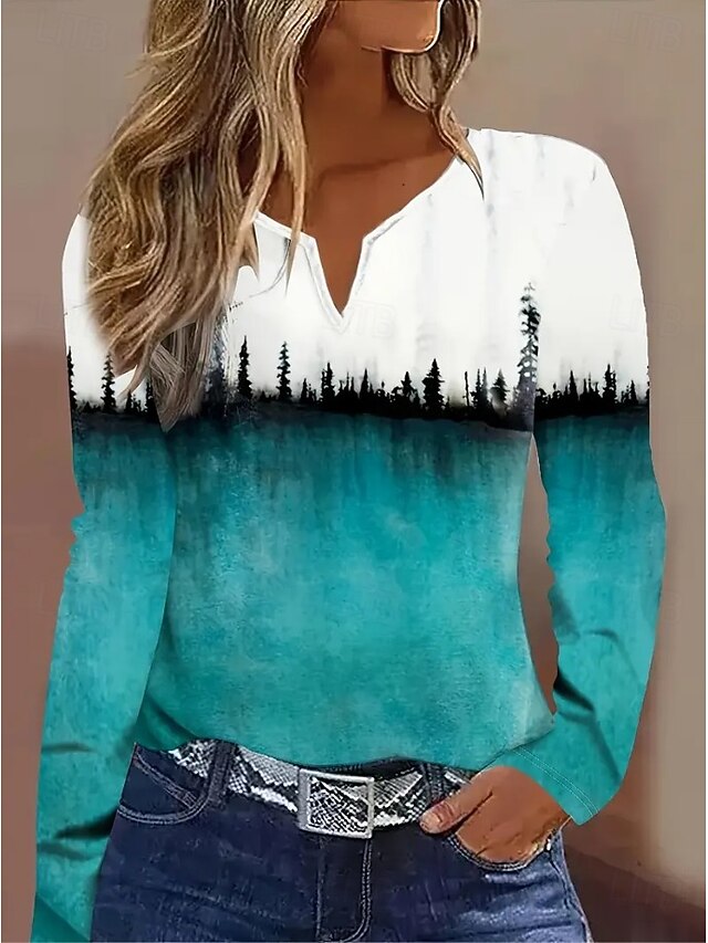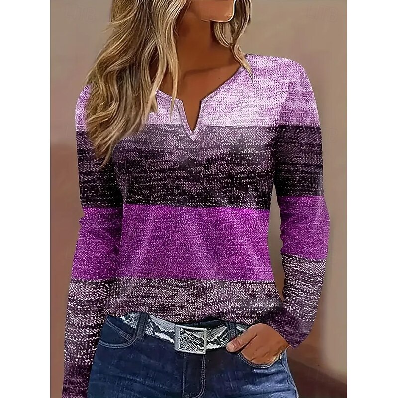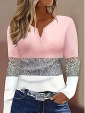 More information about Women's T Shirt Graphic Geometric Vintage Stylish Classic Long Sleeve Notched Neck Regular Tops Daily Weekend Print Pink Blue Spring Fall