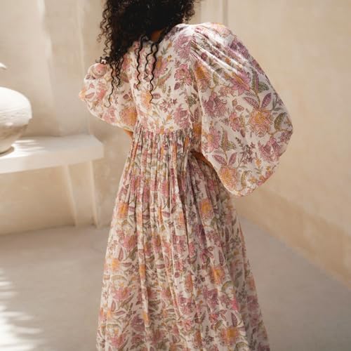 Women Floral Maxi Dress Boho Printed 3/4 Lantern Sleeve V Neck Maternity Dress Beach Loose Sundress Pregnant