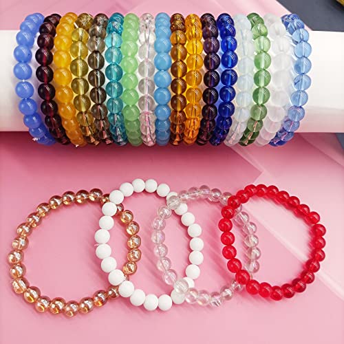 CASDAN 21Pcs 8mm Beaded Stretch Bracelet Handmade Glass Bracelet for Women Men Colorful Crystal Beads Bracelet Elastic Round Bead Bracelets Jewelry 4