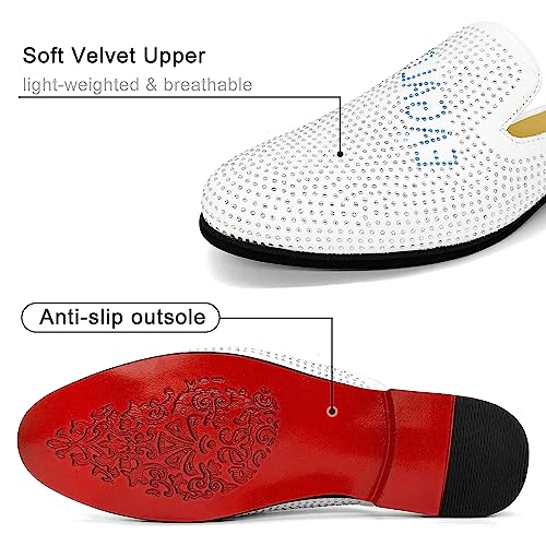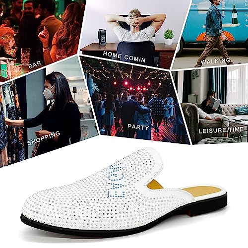 Mens Velvet Slip-On Mules Loafers Glitter Half Loafers Shoes Mens Backless Sandals Black White Size 7-13