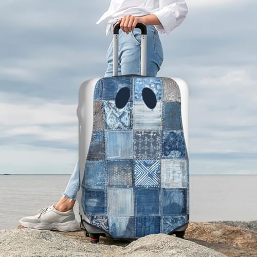 Cute Denim Patchwork Ghost Elastic Travel Luggage Covers Dustproof Scratch-Resistant Suitcase Protector Fit 22-24 Inch 7
