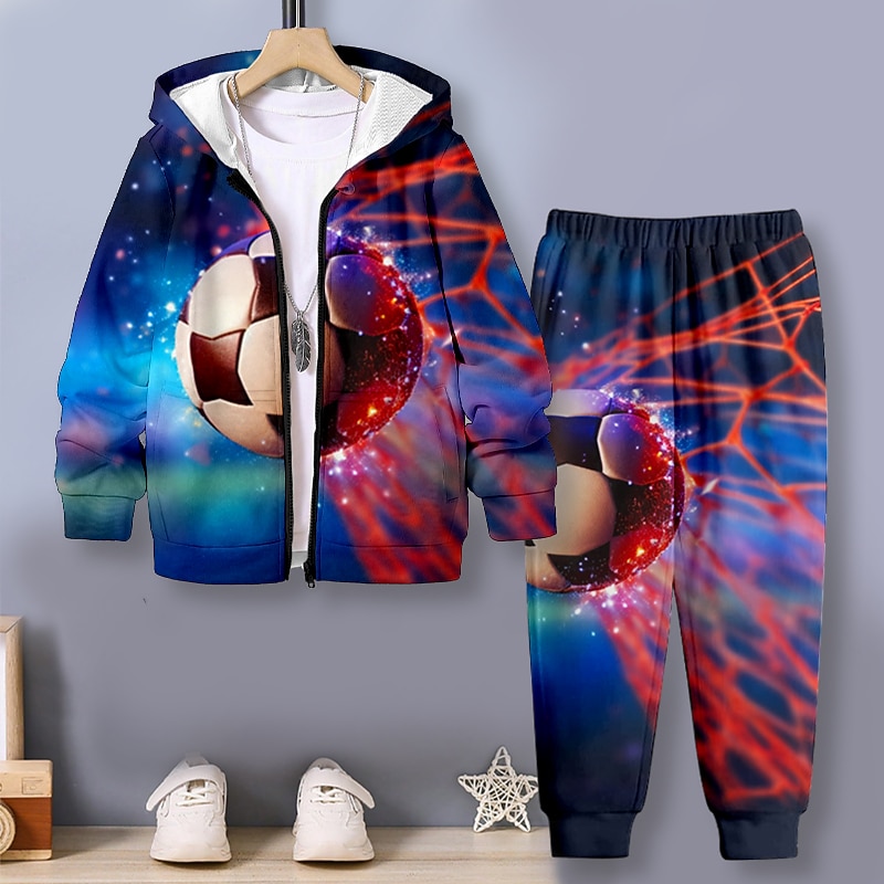 Why Choose Boys 3D Football Hoodie & Pants Set Long Sleeve 3D Printing Fall Winter Active Fashion Cool Polyester Kids 3-12 Years Outdoor Street Vacation Regular Fit?