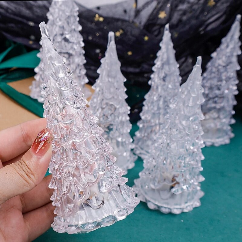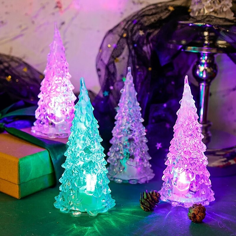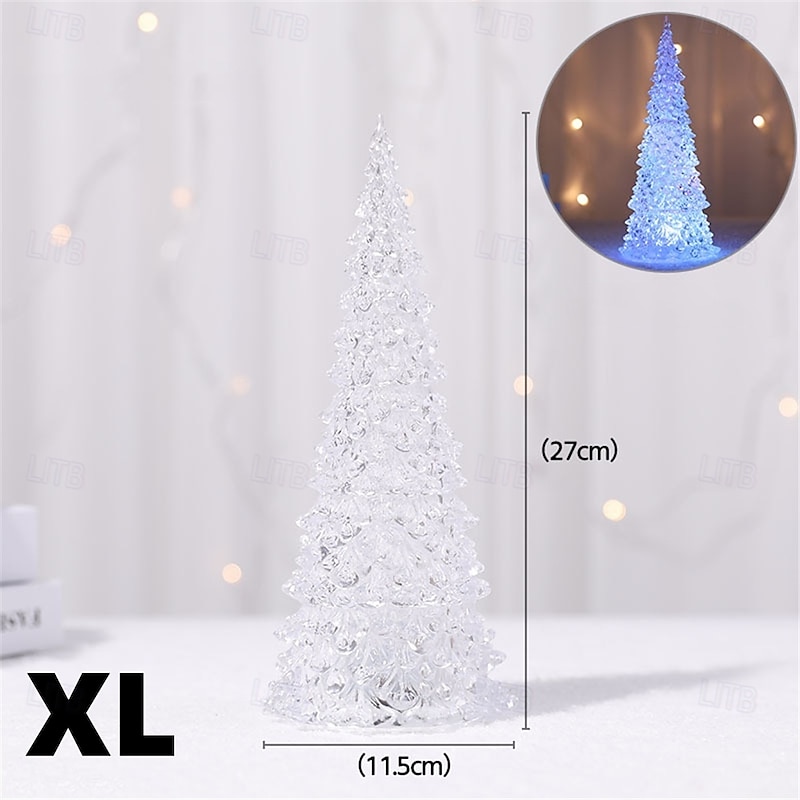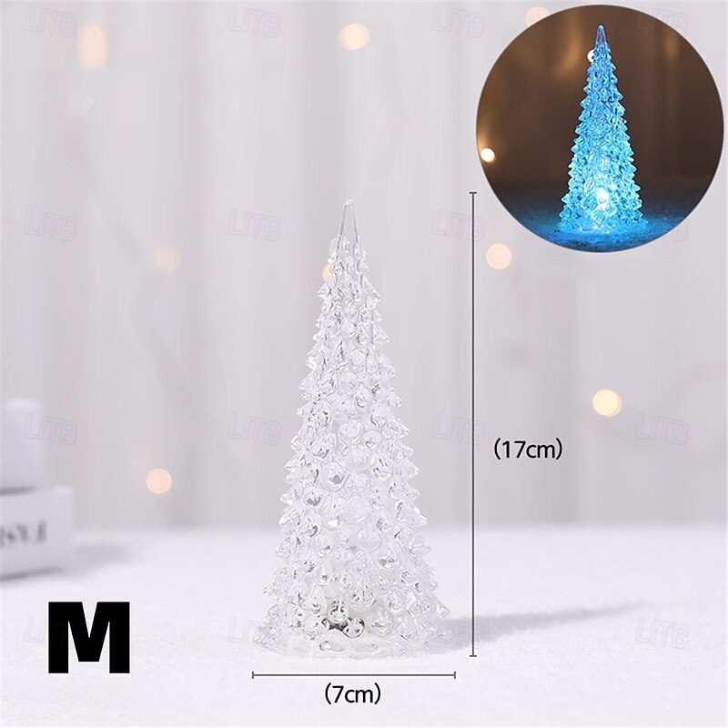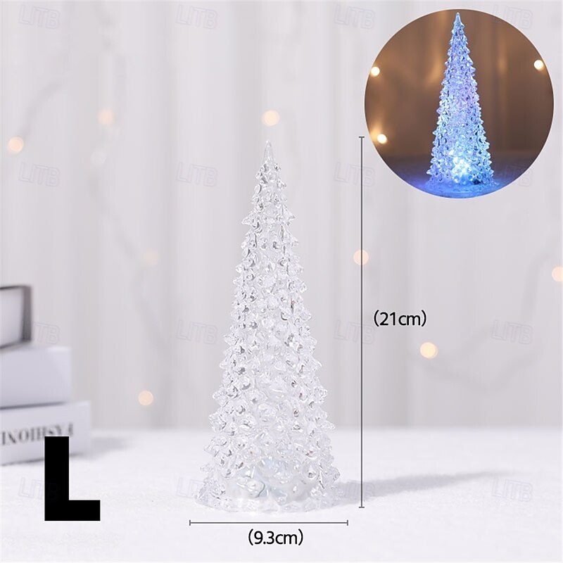 trending ! Colorful Acrylic Christmas Tree Christmas Gift Iceberg Ice Cone Light Led Light Desktop Night Light Decoration Holiday Party Wedding Decoration Light Button Battery Powered 1PC