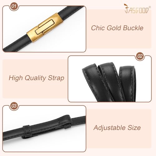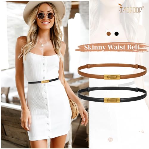 JASGOOD 2 Pack Women's Skinny Leather Belt Adjustable Thin Waist Belt for Dress Pants