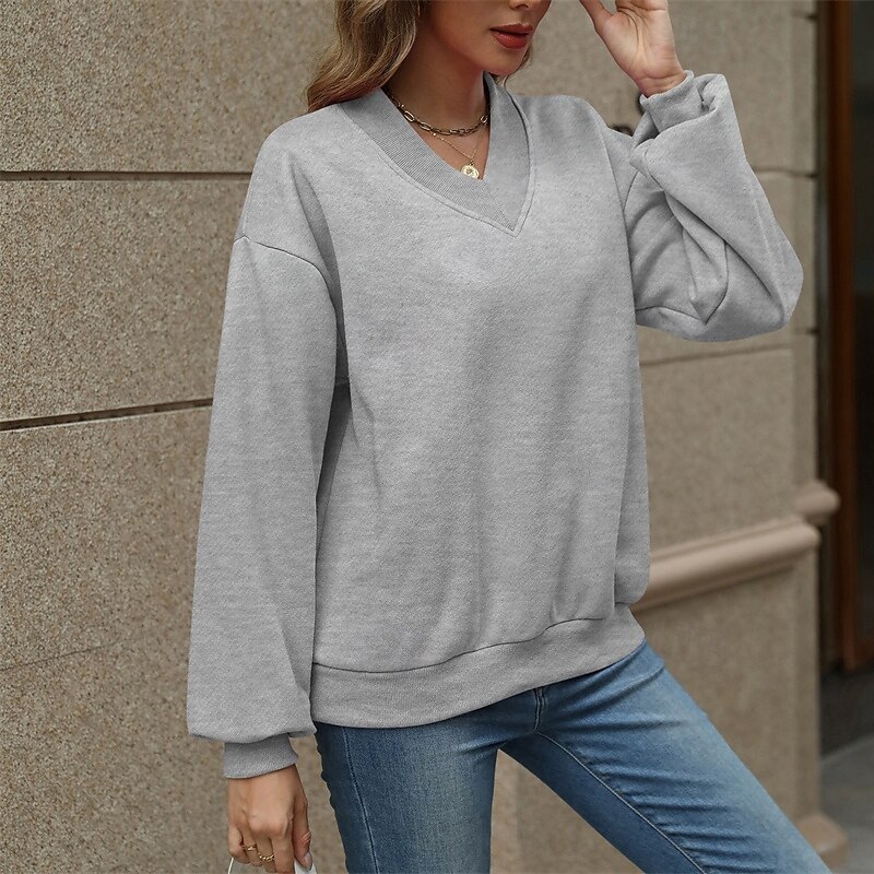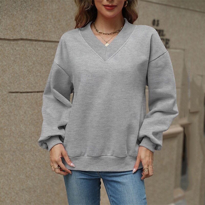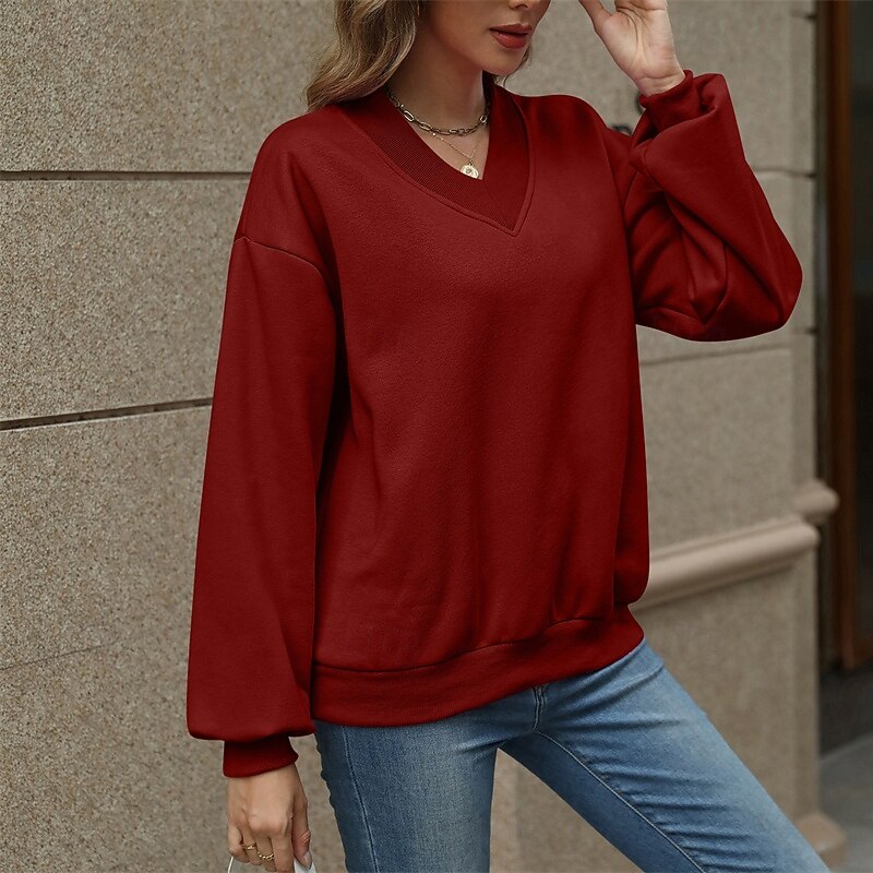 More information about Women's Pullover Plain Streetwear Casual Comfy Long Sleeve V Neck Regular Tops Street Holiday Going out Pink Wine Gray Fall