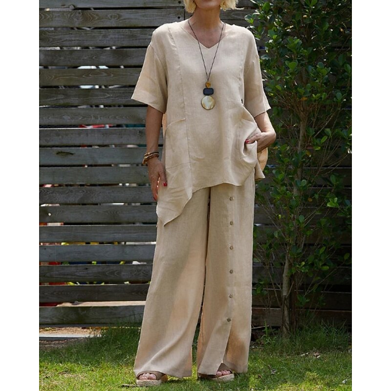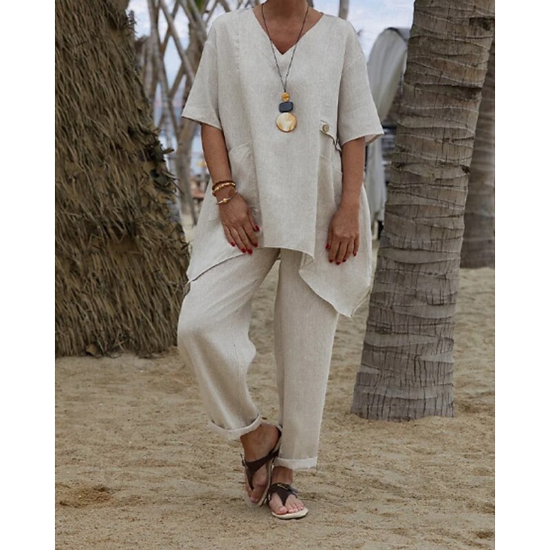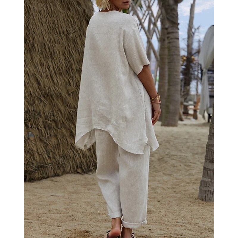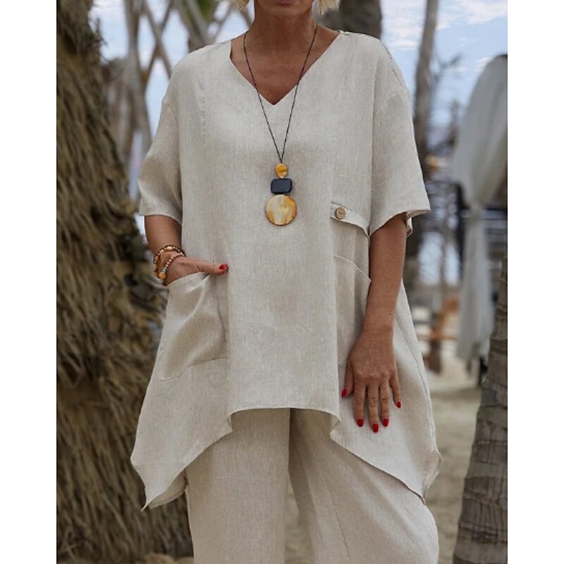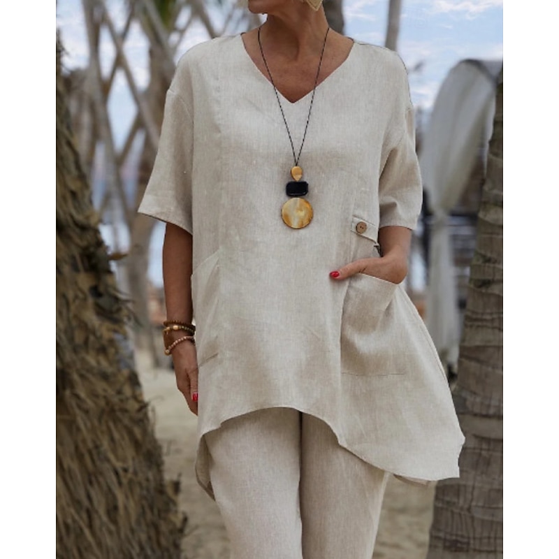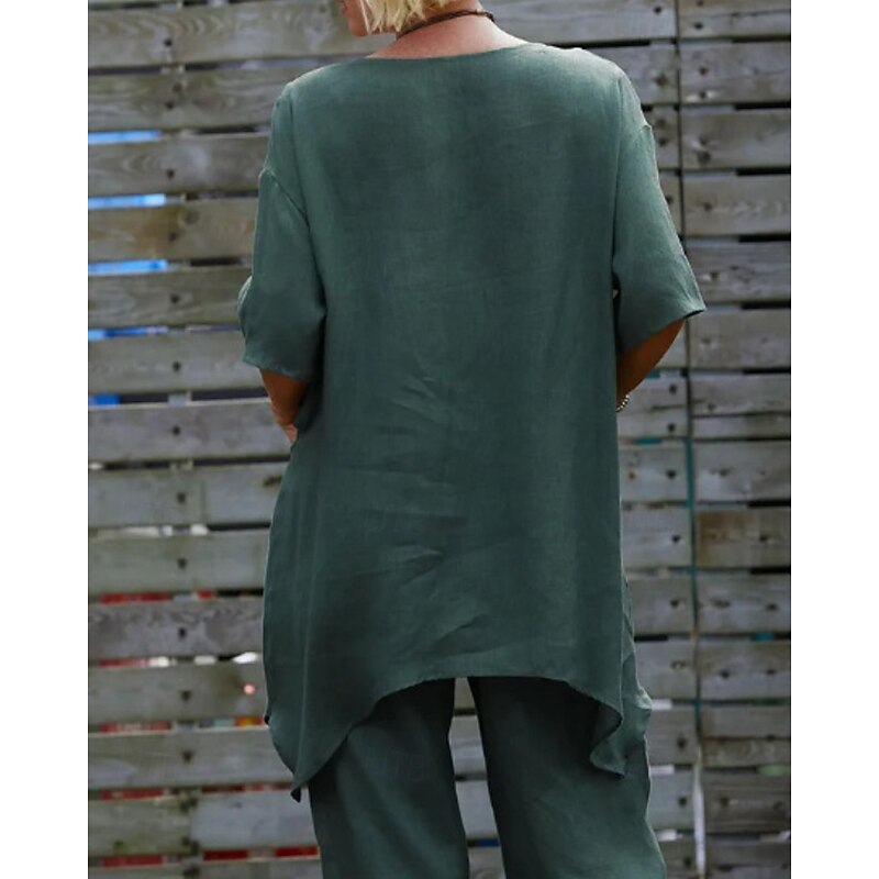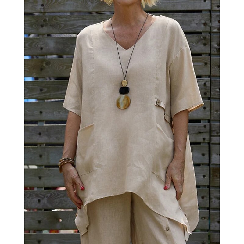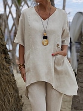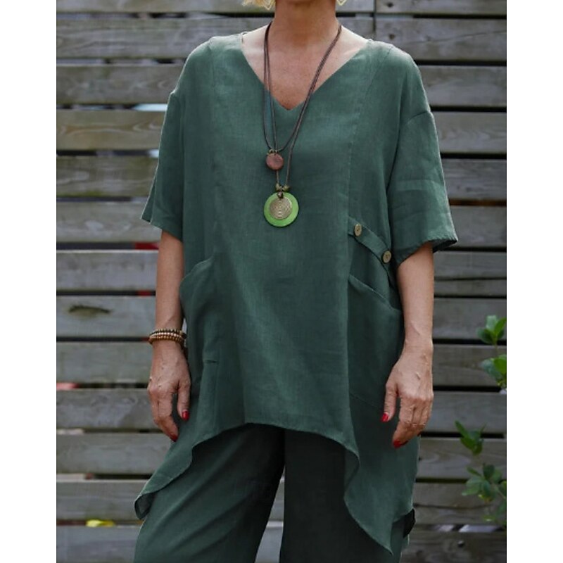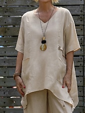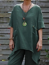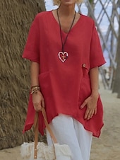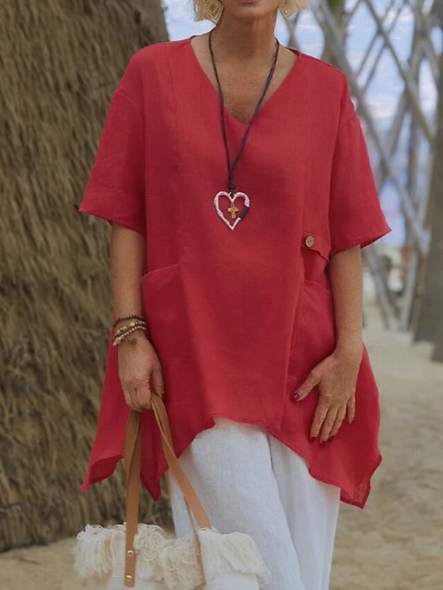 More information about Women's Shirt Linen-Inspired Shirts Blouse Plain Modern Casual Half Sleeve V Neck Regular Tops Daily Going out Asymmetric White Red Green Apricot Summer