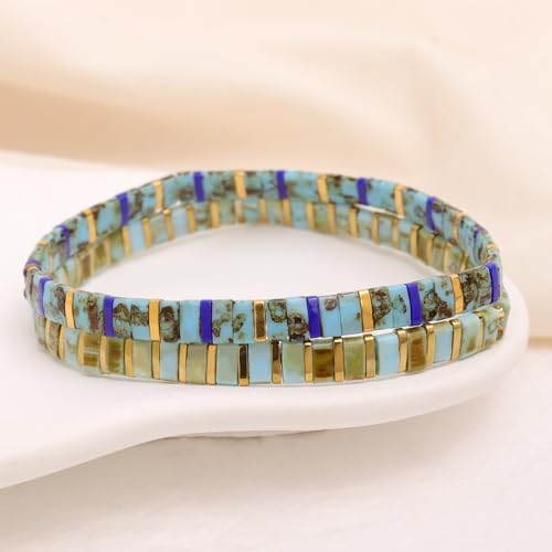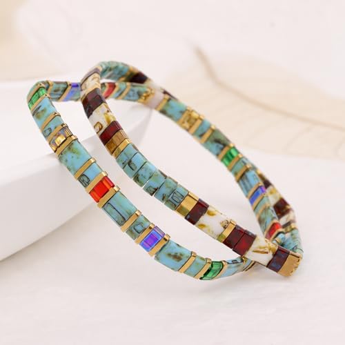 Tila Flat Beaded Bracelets Set for Women, 4Pcs Trendy Handmade Miyuki Glass Stack Beads Stretch Bracelet Festive Holiday Accessories Jewelry Gift. 1