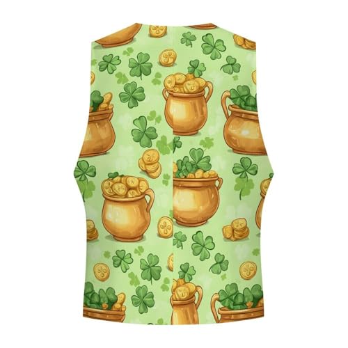 Shamrock St-Patrick's Day Coins Men's Suit Vests Business Formal Dress Vest V-Neck Waistcoat for Wedding Casual