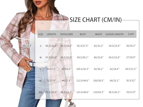 • Premium Fabric & Comfort:Crafted from high-quality tartan flannel material, this women’s plaid blazer offers exceptional warmth, making it perfect for fall and winter. The smooth full lining enhances comfort and durability, while the shrink-resistant fabric ensures long-lasting wear.