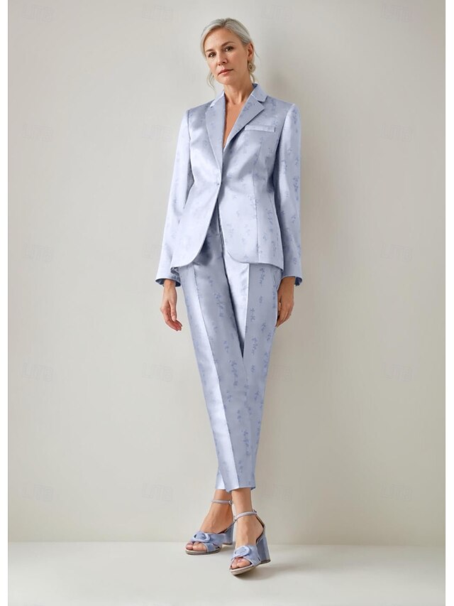 More information about Women's 2 Pieces Suits Formal Wedding Guest Formal Evening Satin Elegant Vintage Simple Long Sleeve Ankle Length Notched Lapels Single Breasted