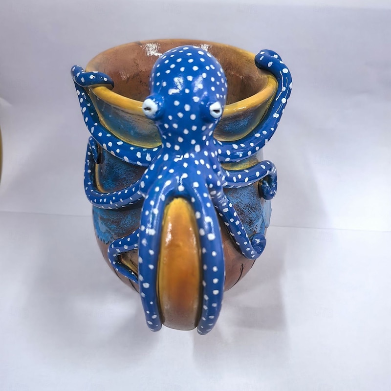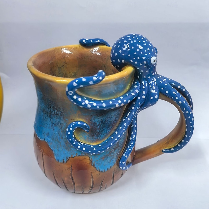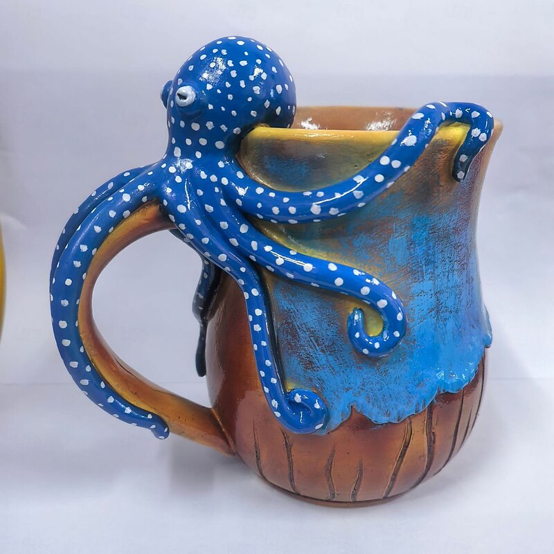 HOT ! Deep Blue Octopus Mug, Resin Coffee Cup with 3D Tentacle Design, Nautical Themed Drinkware, Unique Gift for Ocean Lovers & Home Decor