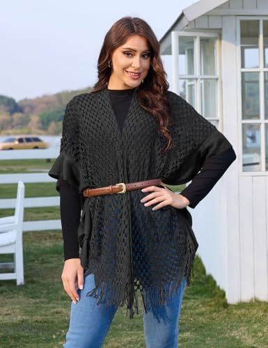 Fabric type: 100% AcrylicCare instructions: Machine WashOrigin: ImportedCHIC RUFFLE DESIGN: Add a touch of elegance to your wardrobe with this ruffle shawl wraps for women. Featuring intricate crochet patterns, soft ruffle details, and a fringe hemline, this poncho cardigan effortlessly combines femininity and style for any occasion.SOFT AND LIGHTWEIGHT : Made from 100% acrylic, this lightweight shawl wrap is breathable, skin-friendly, and perfect for layering in spring and summer. Its soft texture ensures all-day comfort, whether you're pairing it with casual wear or dressier outfits.VERSATILE ONE-SIZE FIT: Designed as a one-size-fits-most shawl wrap for women, the open-front poncho cardigan provides a relaxed yet flattering fit. Its flowy silhouette makes it a timeless addition to wardrobes of all shapes and sizes.PERFECT FOR ALL OCCASIONS: Whether you're headed to the beach, a casual outdoor event, or a cozy evening gathering, this crochet shawl wrap transitions effortlessly from day to night. Pair it with dresses, jeans, or swimsuits for a sophisticated, yet laid-back look.CONFIDENCE AND STYLE: This ruffle shawl wrap isn't just a piece of clothing - it's a statement of elegance and confidence. Feel empowered, graceful, and chic as you embrace its timeless design and lightweight feel, delivering comfort and charm wherever you go. Perfect for everyday use. first-class materials and excellent craftsmanship ensure long-lasting durability.