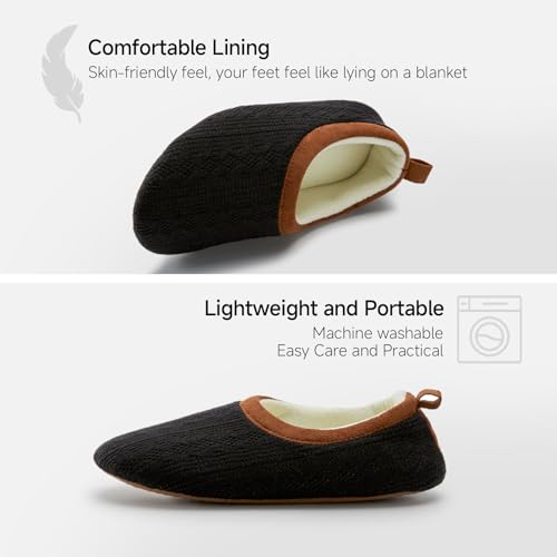 Sole material: Thermoplastic ElastomersOuter material: KnittedClosure type: Pull-OnOriginal design, simple shape, innovative combination of retro elements. Suitable for all women, compact box packaging, perfect gift.Breathable knitted fabric, keep dry and snug, suitable for all seasons. TPR sole, soft and silent, non-slip and wear-resistant, walk as silently as a cat, and also allow you to pick up the mail outside the house.High-resilience memory foam relaxes your feet, just like stepping on a pillow. The skin-friendly lining provides just the right wrapping feeling for your feet. Lightweight and portable, it accompanies you in all your leisure time at home and on vacation.Sizing Guide: US 5-6 (foot length:8.66/22cm); US 7-8 (foot length:9.25/23.5cm); US 9-10 (foot length:9.84/25cm); US 11-12 (foot length:10.43/26.5cm). Please measure your foot length first. If you are 6.5/8.5/10.5, or you need to wear thick socks with your slippers, please size up. Sizes are listed in medium width, so please size up or down if you’re looking for a wide or narrow fit.Machine Washable. Wash using gentle cycle in cold water. Flat dry. When wearing them for the first time, use your fingers to adjust the collar for a better wrapped feel. The fabric is soft, allowing you to step on the heel and wear them as slip-ons—perfect for midnight bathroom trips. Perfect for everyday use. supreme materials and excellent craftsmanship ensure long-lasting durability.