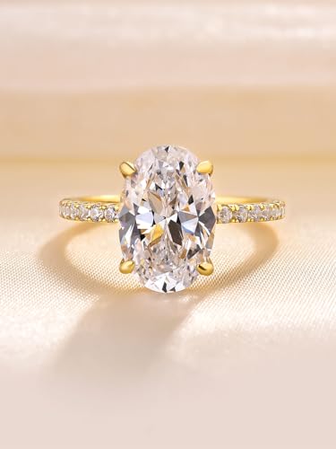 Ring size: 4Material: MetalMetal type: Sterling SilverGem type: Cubic Zirconia💎Thick Gold Plating:To avoid any issues with the gold wear off, we have thickened the plating of our engagement ring, which has been tested by our staff to ensure it doesn't tarnish easily. If you experience any issue with gold wear off during daily wear, please contact us, and we'll be more than happy to replace it for free.💍Classic Design: The 3.5-carat oval-shaped main stone embodies the most classic proportions—neither too large nor too small. Sized at 8x12mm, it offers the perfect balance, elongating the fingers without appearing overly prominent. Enhanced by a hidden halo and half eternity band design, it's a flawless reproduction of timeless elegance.✨Precision Cutting:Our experts at Effinny have spent over 10 years perfecting the cut of the stone, resulting in a higher fire and refractive index than real diamonds. With the best stones and exquisite cuts, every stone in this ring is designed to shine.💍Comfortable Wear:Our ring is lead-free and nickel-free for safety and environmental-friendliness. With its smooth edges and meticulous polishing, you can wear it comfortably without worrying about scratching your clothes or skin.🎁Thoughtful Gift: Presented in a beautifully packaged gift box, this engagement ring is a perfect gift for your loved ones on special occasions like Valentine's Day, Women's Day, Mother's Day, Thanksgiving, Christmas, or any other celebration. Perfect for everyday use. first-class materials and excellent craftsmanship ensure long-lasting durability.