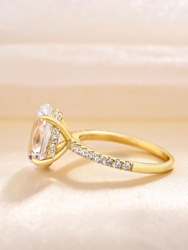 3.5ct Elongated Oval Cut Engagement Ring,No Tarnish Yellow Gold Plated 925 Sterling Silver Simulated Diamond Promise Ring