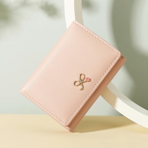 trending ! Sunwel Fashion Girls Cute Coquette Bow Wallet with Pink Froral Small Wallet Cash Pocket Card Holder ID Window Purse for Women (PINK)