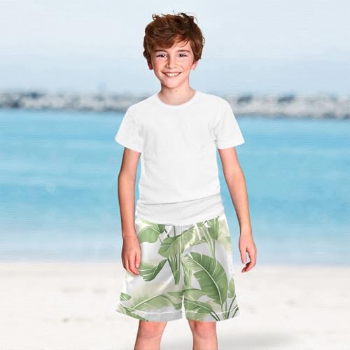 Plantain Leaf Pattern Boys Swim Trunks, prompt Dry Toddler Beach Shorts Boy Swimwear Bathing Suit