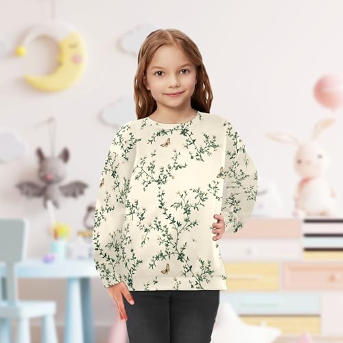 JUNZAN Retro Butterflies Herbs Beige Kids Boys Hoodie Sweatshirt Long Sleeve Sweatshirt With Hoodie Athletic 4T 5