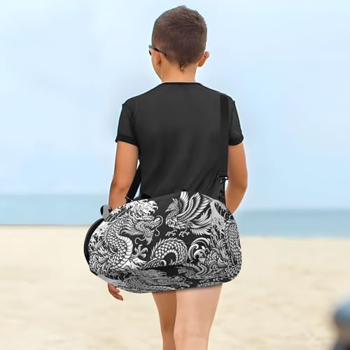 Japanese Dragon Phoenix Duffle Bag for Girl, Sports Duffle Gym Bags with Shoe Compartment, Personalized Overnight Bag Travel Weekender for Kids 4