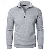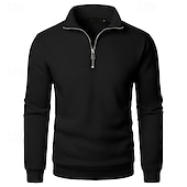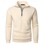 More information about Men's Sweatshirt Pullover Hoodie Sweatshirt Pullover Quarter Zip Sweatshirt Apricot Black White Wine Khaki Lapel Plain Zipper Sports & Outdoor Casual Daily Streetwear Cool Sportswear Spring & Fall