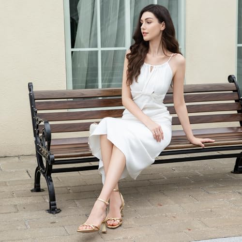 Sole material: RubberOuter material: Polyurethane (PU)Closure type: BuckleWater resistance level: Not Water ResistantRound Toe Comfort and Breathable Design: Unlike square-toe sandals, these round open toe heels provide extra room for natural toe movement, perfect for wide feet or extended wear. The breathable strappy upper keeps feet cool during summer weddings, proms, or outdoor parties.3-Inch Chunky Block Heels for All-Day Stability: Designed with a thick, non-slip rubber base and 3-inch chunky heels, these open toe dress sandals offer superior support for dancing, walking, or standing,deal for wedding guests or bridesmaids.Adjustable Ankle Strap: The gold heels for women with double-buckle ankle strap ensures a secure fit for narrow or wide feet, Perfect for outdoor events (grass, cobblestones) or indoor parties, these strappy heels stay put without compromising style.Premium Materials and Reusable Comfort: Made with skin-friendly PU leather and a soft insole, these heels are approved for all-day wear. Unlike single-use bridal shoes, they’re reusable for date nights, office events, or vacations.Versatile for Hottest Occasions: From beach weddings to prom nights, these dressy round toe sandals pair effortlessly with lace gowns, jumpsuits, or cocktail dresses. The gold/silver heels match trending bridesmaid color palettes and casual summer outfits.For the most cozy experience, we suggest ordering half a size up! Perfect for everyday use. superior materials and excellent craftsmanship ensure long-lasting durability.