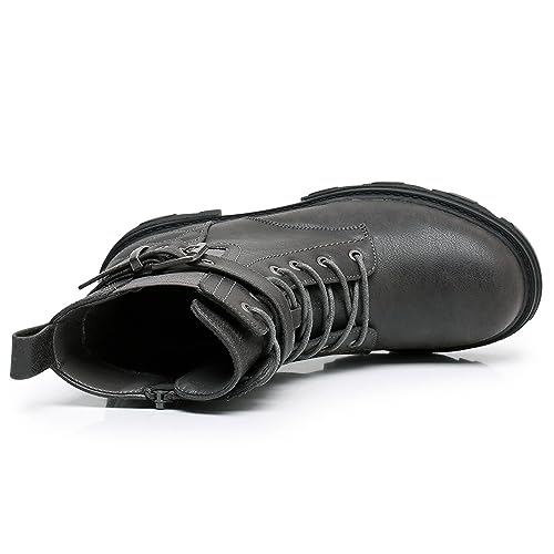 GLOBALWIN Women's Combat Boots Lace Up Ankle Booties cushy Lug Sole Boots For Women Chunky Low Heel