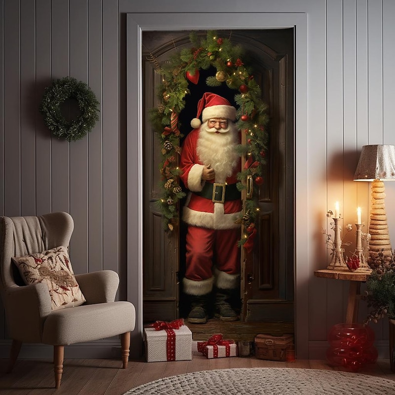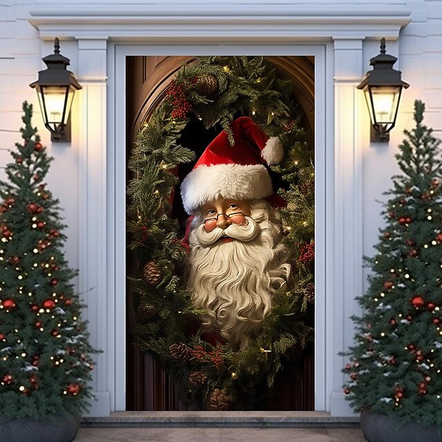 HOT ! Christmas Door Decorations Santa Wreath Door Covers Door Tapestry Door Curtain Decoration Xmas Backdrop Door Banner for Front Door Holiday Party Decor Supplies