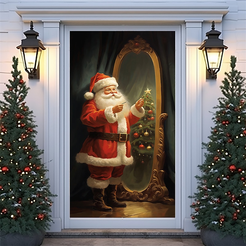 Christmas Door Decorations Santa Wreath Door Covers Door Tapestry Door Curtain Decoration Xmas Backdrop Door Banner for Front Door Holiday Party Decor Supplies 1