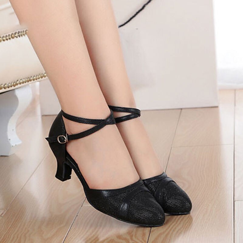 Highlights [Fabric] : Crafted with sparkling glitter upper materials, these women's ballroom dance shoes boast a luxurious faux leather finish that catches the light, offering both durability and a polished look. [Fit] : Designed with a snug Cuban heel, these shoes provide the perfect balance of elegance and practicality, ideal for long hours of wear during dancing or formal events. [Design Highlights] : The shoes feature a graceful cross-strap detail around the ankle, secured with an easy-to-use adjustable buckle, ensuring a snug and supportive fit. The closed, rounded toe design adds a touch of sophistication and ample coverage. [Occasions] : Perfect for indoor practice sessions, ballroom dance events, and waltz performances, these shoes can also add a dash of glamour to any special occasion or outfit. [Size Notice] : Available in a range of sizes from 33 to 43, these shoes are designed to fit your usual shoe size, providing a standard and comfortable fit for adults. Perfect for everyday use. supreme materials and excellent craftsmanship ensure long-lasting durability.