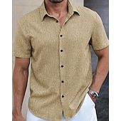 More information about Men's Shirt Summer Shirt Casual Shirt Beach Shirt Button Up Shirt Blue Green Deep Blue khaki Beige Short Sleeve Plain Lapel Vacation Hawaiian Clothing Apparel Polyester Fashion Casual Comfortable