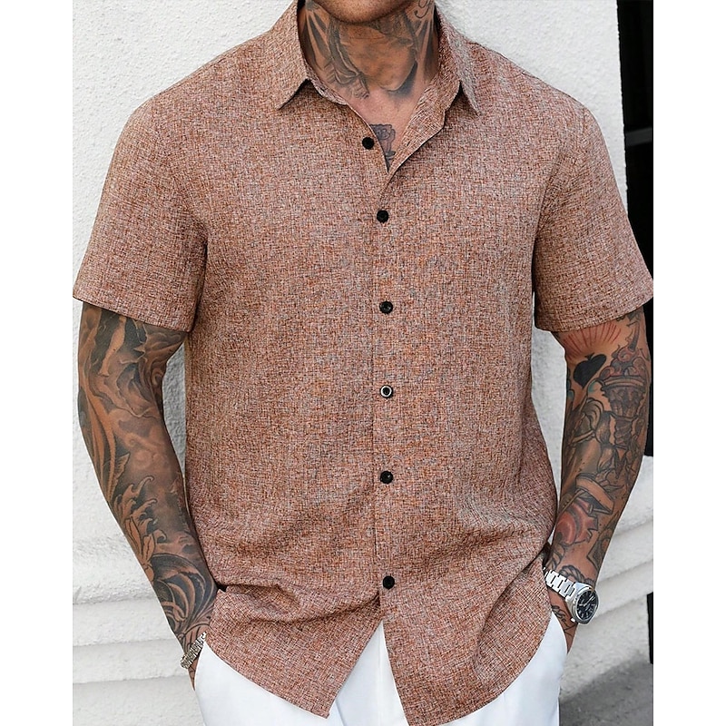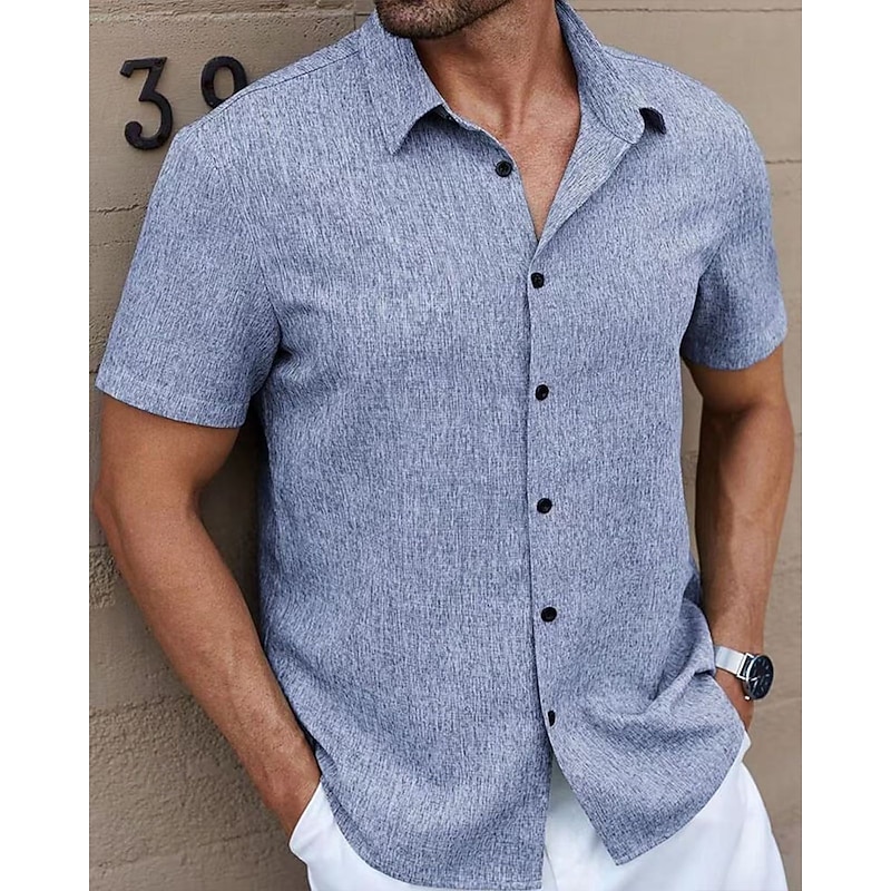Men's Shirt Summer Shirt Casual Shirt Beach Shirt Button Up Shirt Blue Green Deep Blue khaki Beige Short Sleeve Plain Lapel Vacation Hawaiian Clothing Apparel Polyester Fashion Casual Comfortable 19