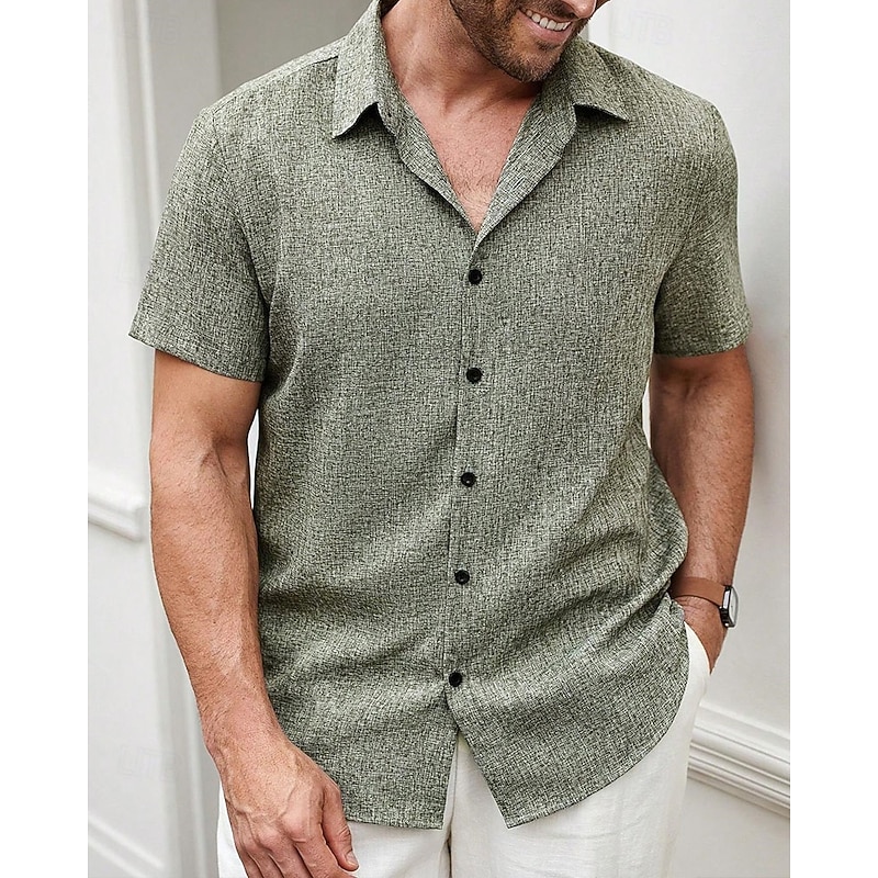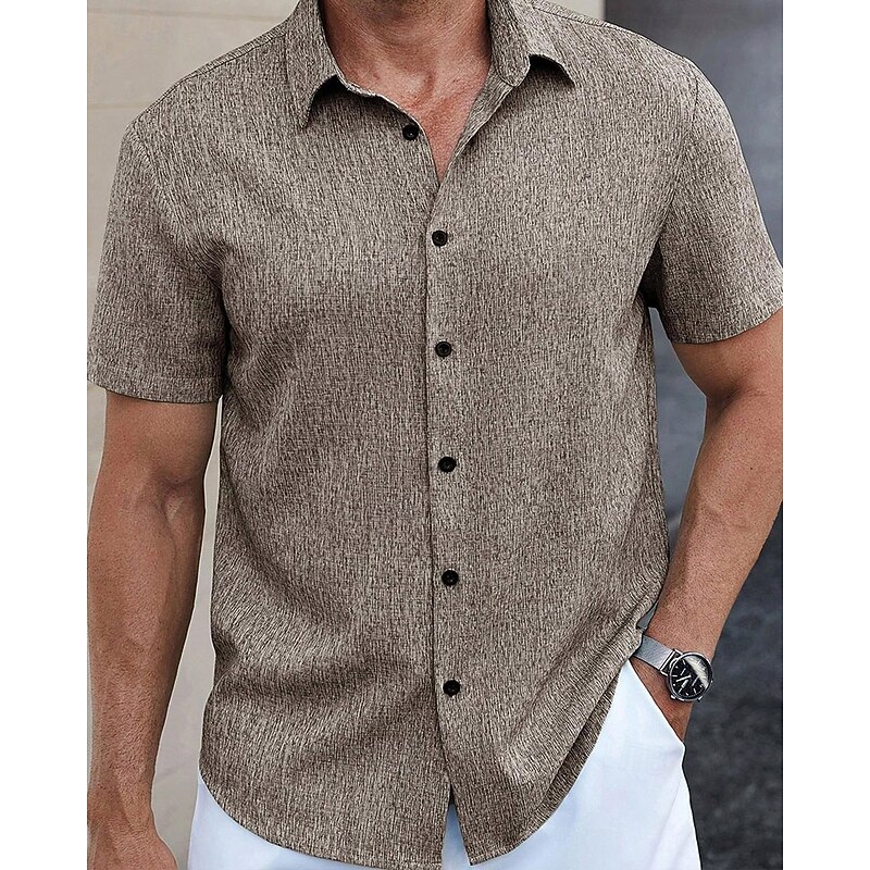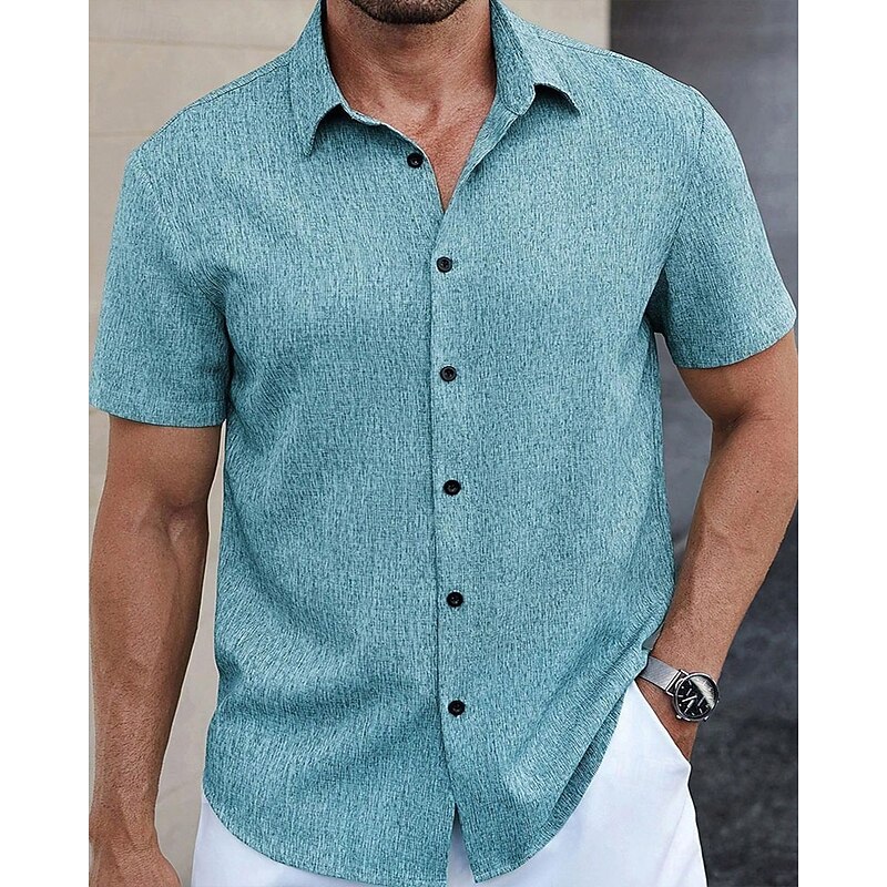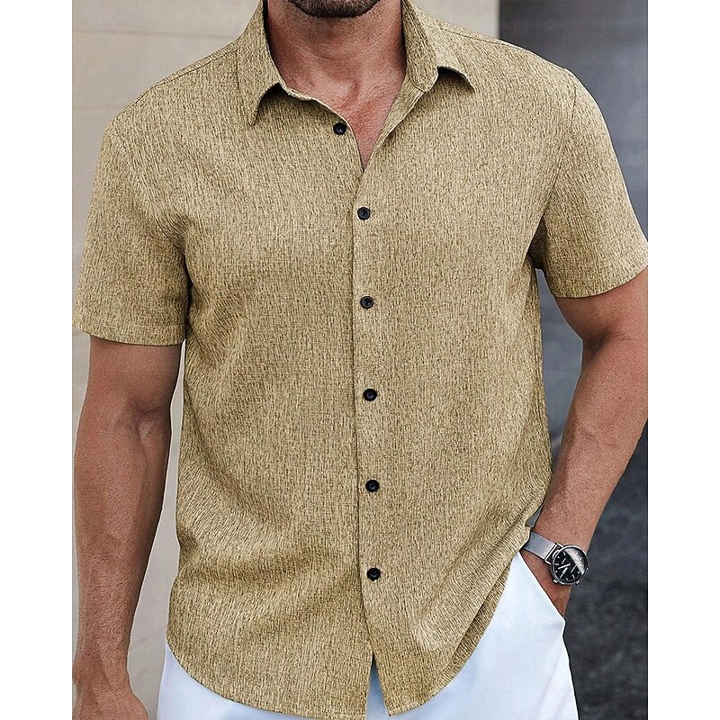 HOT ! Men's Shirt Summer Shirt Casual Shirt Beach Shirt Button Up Shirt Blue Green Deep Blue khaki Beige Short Sleeve Plain Lapel Vacation Hawaiian Clothing Apparel Polyester Fashion Casual Comfortable