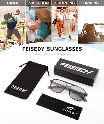 • [High Quality Materials] FEISEDY sunglasses are made of high-quality plastic frames and resin lens material, UV400 protection lenses, durable lightweight materials and reinforced metal hinges. It is smooth,comfortable and durable.