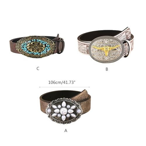 appuivbt Vintage White Stone Buckle Belt Engraved Flower Belt Embossed Leather Belt Vintage Western Belt Jeans Belt 3