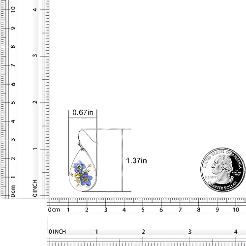 Back Finding: French WireEarring design: Dangle[supreme] Forget me not jewelry are handmade by our experienced craftsmen, with perfect resin curves and thickness. The shape of each pressed flower earrings is unique, paired with sterling silver French ear hook, It is hypoallergenic and preventing from ear infection. 100% free from BPA, lead, nickel and cadmium.[exquisite Shape] Forget-Me-Not represents eternal memory, eternal love, and an unchanging heart. Simple floral earrings can be matched with any clothing to add a trace of vitality to any outfit. This dangle silver earrings are light, elegant and durable, and perfect to your daily jewelry collection.[Suitable Size] Our plant earrings Height: 1.37in; Width: 0.67in, after many times wearing test and improvements, this size is suitable for most womens. Unique dangle earrings won't drag down your earlobes, because they are so light that you can wear them all day. Check pictures of the product to determine whether the size is right for you.[Maintenance method] In order to prolong the service life of pressed flower earrings, please store jewelry in a cool and dry place, such as a jewel box or bag, and avoid rubbing with other silver jewelry. In addition, keep it away from cleaning products, which will have a negative impact on your flower earrings.[Exquisite Gift] We have delicate box and beautiful handmade earrings for women, it can be a nice gift as well. Give it to your lover, mom, aunt and grandma, kids, best friends and anyone who is important to you. This is a thoughtful gift for Birthday, Mother's Day, Anniversary, Graduation, Thanksgiving, Christmas, Valentine's Day. Perfect for everyday use. High quality materials and excellent craftsmanship ensure long-lasting durability.