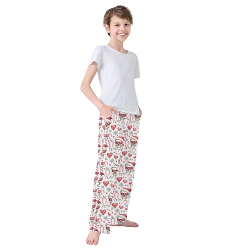 Christmas Pajama Pants Skull with Red Santa Hats Heart Long Sleep Pants Lounge Bottoms 4