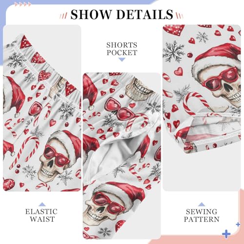 Christmas Pajama Pants Skull with Red Santa Hats Heart Long Sleep Pants Lounge Bottoms 7