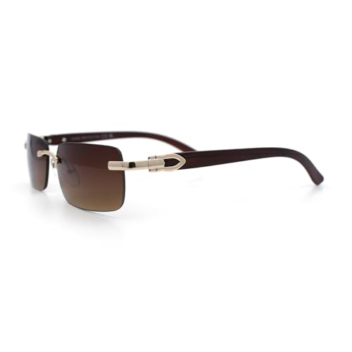 SA106 Rimless Luxury Narrow Rectangle Woodbuff Arm Fashion Sunglasses 7