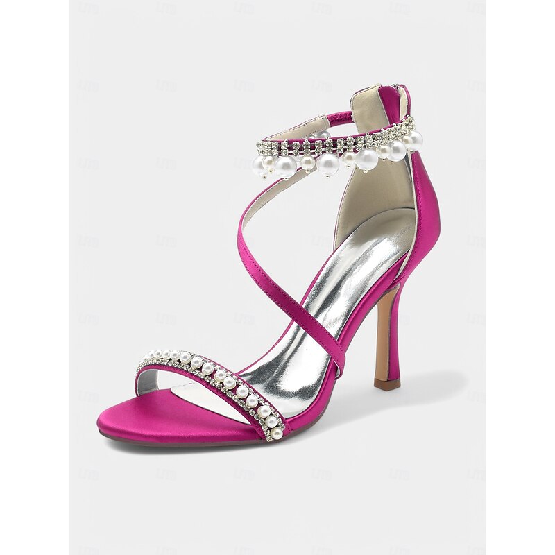 trending ! Pink Satin Pointed-Toe Ankle Strap Heels – Chic Party & Prom Pumps for Women