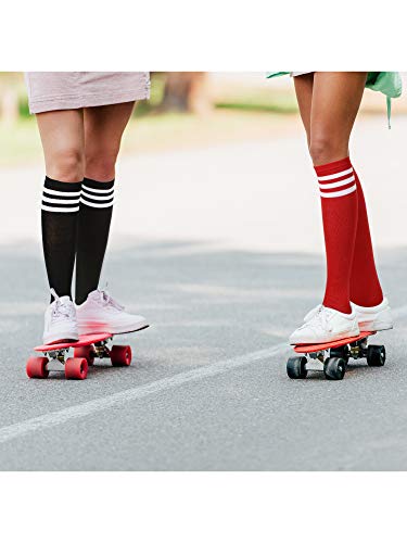 SATINIOR Triple Stripes Knee High Socks Unisex Cotton Three Knee High Tube Socks (White in Red/Black Stripe, Red in White Stripe, Black in White Stripe, 4) 4