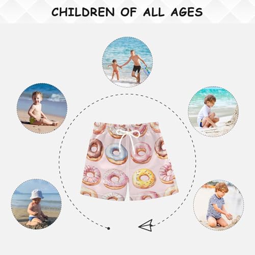 Pigsaly Boys' Swim Board Shorts Sprink Sugar Watercolor Pink Donuts Boy's Swim Trunks Kids Swimwear 2T 5