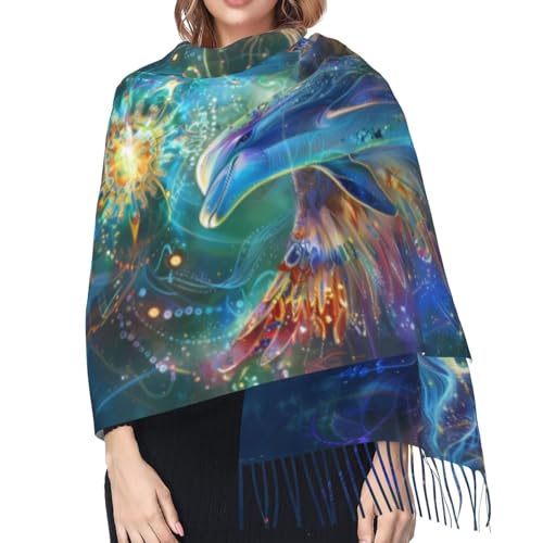 Shawl Wraps for Women - Colorful Winged Dolphin Oversized Fall Winter Blanket Fashion Scarf for Womens