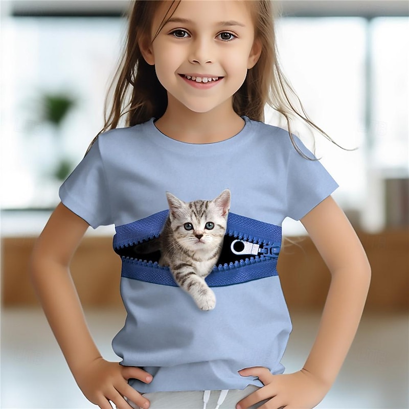 Why Choose Girls' 3D Cat Tee Shirts Pink Short Sleeve 3D Print Summer Active Fashion Cute Kids 3-12 Years Crew Neck Outdoor Casual Daily Regular Fit?