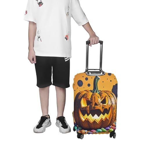 Halloween Pumpkin Monster Luggage Cover, Elastic Luggage Protector Fits 19-32in Suitcases, Washable & Anti-Scratch Suitcase Cover for Men Women L