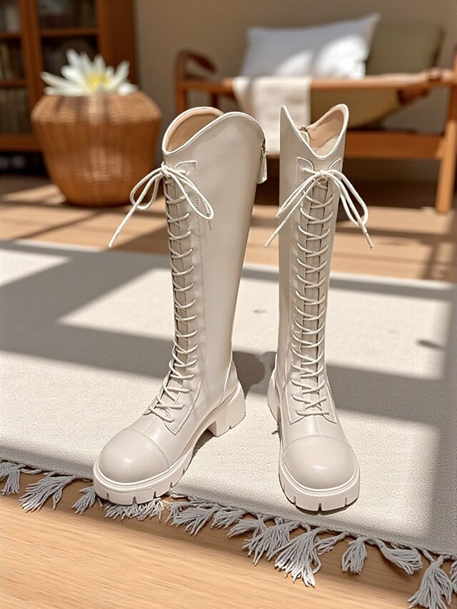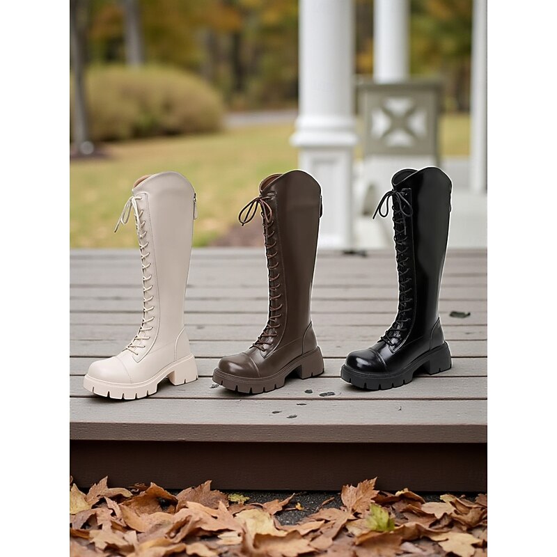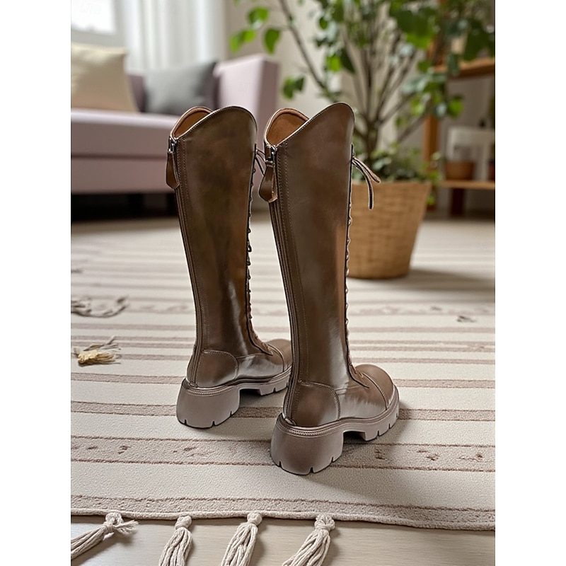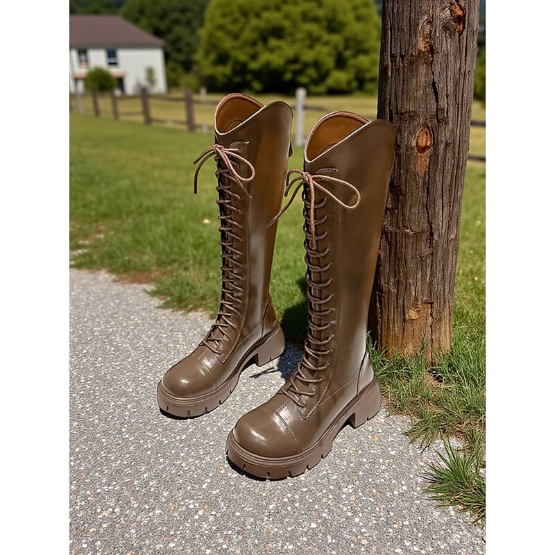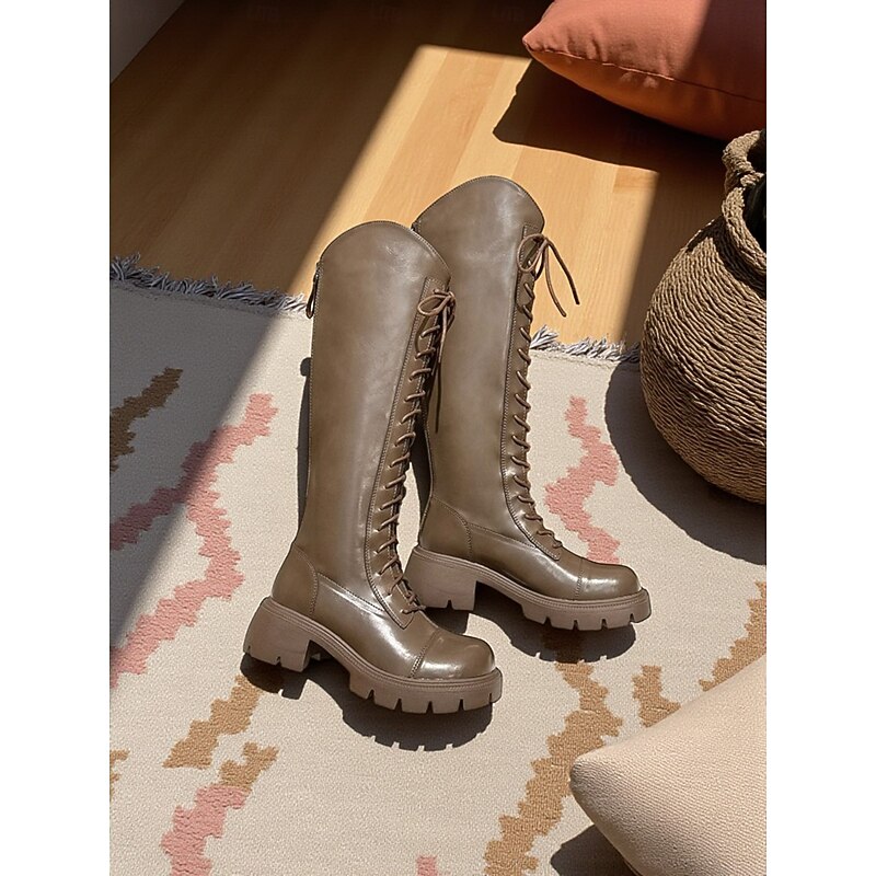 Why Choose Women's Lace-Up Knee High Riding Boots with Chunky Sole and Zipper Closure, contemporary and cushy Footwear for Casual Outings and Everyday Wear?
