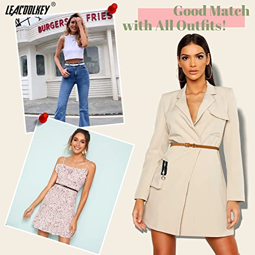 LEACOOLKEY 4 PACK Skinny Leather Belt for Women Dress Thin Waist Belt with Gold Buckle for Jeans