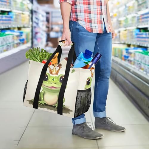 Nander Cute Frog King Foldable Tote Bag Waterproof Sandproof Women Beach Bag Handbag Gym Bag Travel Shopping Bag 7