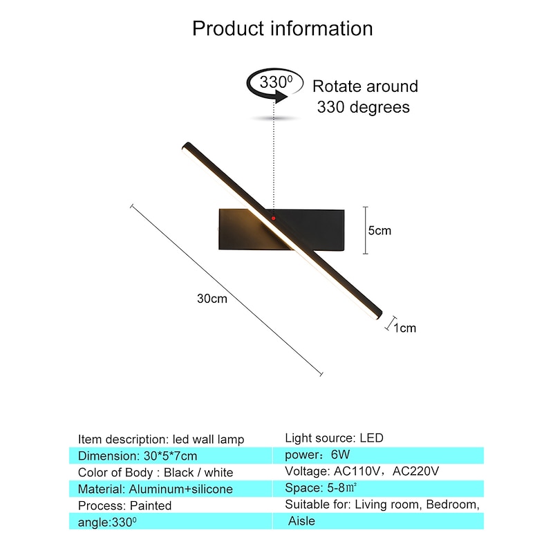 More information about 1-Light 330 Degree Wall Light LED Angle Adjustable Rotary LED Wall Lamp Modern Household Indoor LED Wall Lamp