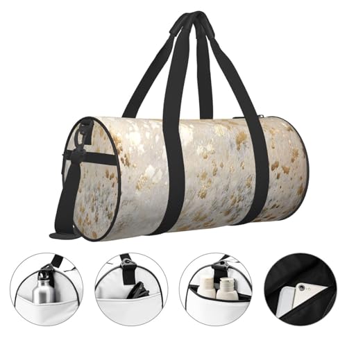 HOT ! Gold Cowhide Print Metallic Duffle Bag, High Capacity Round Sports Luggage Bag With Interior Organizer & Side Storage Pockets